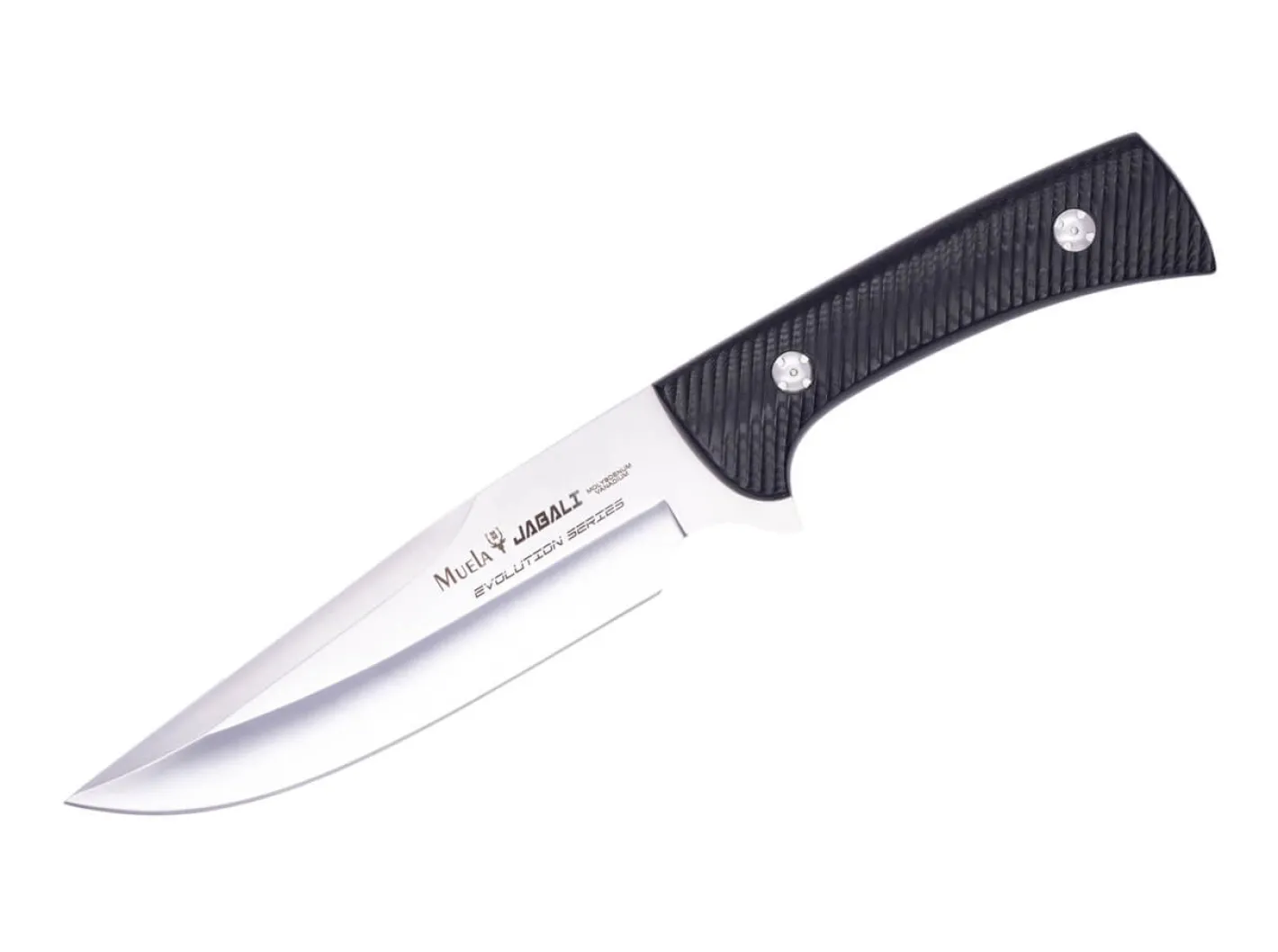 Die Evolution Series von Muela kombiniert traditionelle Werte mit modernen Ansätzen. Das Jabali-17M ist ein Jagdmesser mit hochfester Klinge aus X50CrMoV15, die mit einer ausgeprägten Fehlschärfe versehen ist. Als Griffmaterial kommen CNC gefräste Griffschalen aus schwarzem Micarta zum Einsatz, die dem feststehenden Messer einen angenehmen Halt in der Hand versprechen. Lieferung mit hochwertiger Lederscheide.