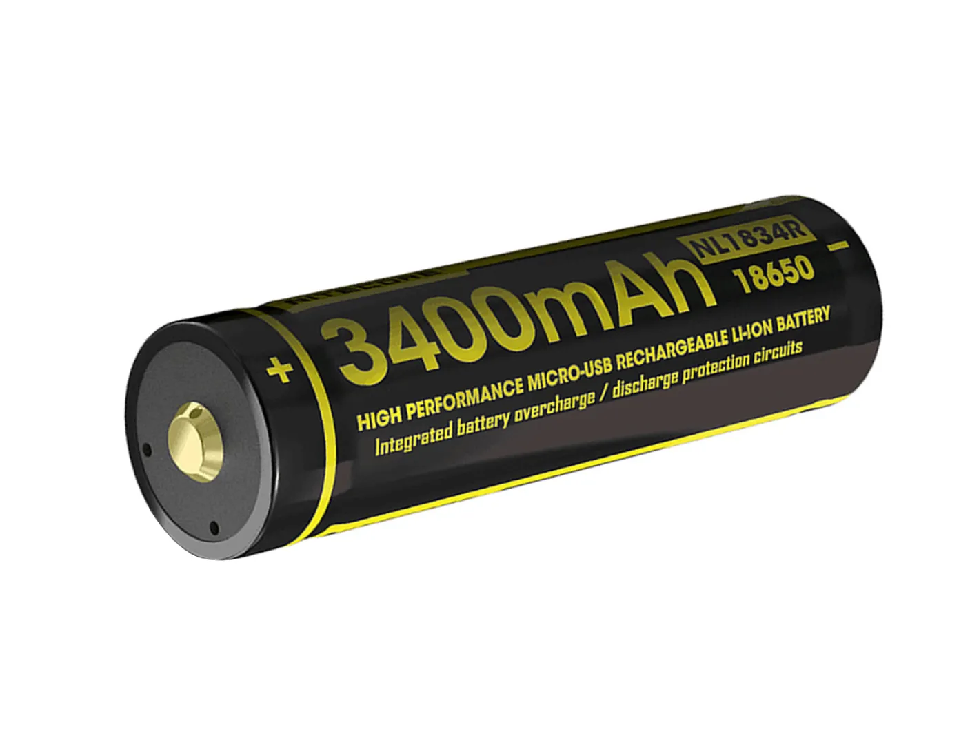 Nitecore Akku Typ 18650 mit 3400 mAh, 3,6V Spannung und Micro-USB-Anschlusss für einfaches Laden. Der Akku kann direkt mit einem Ladekabel verbunden werden, ist aber auch in einem separatem Ladegerät ladbar. Mit Schutzschaltung (PCB / IC-Protection) gegen Kurzschluss, Überladung und Tiefentladung.