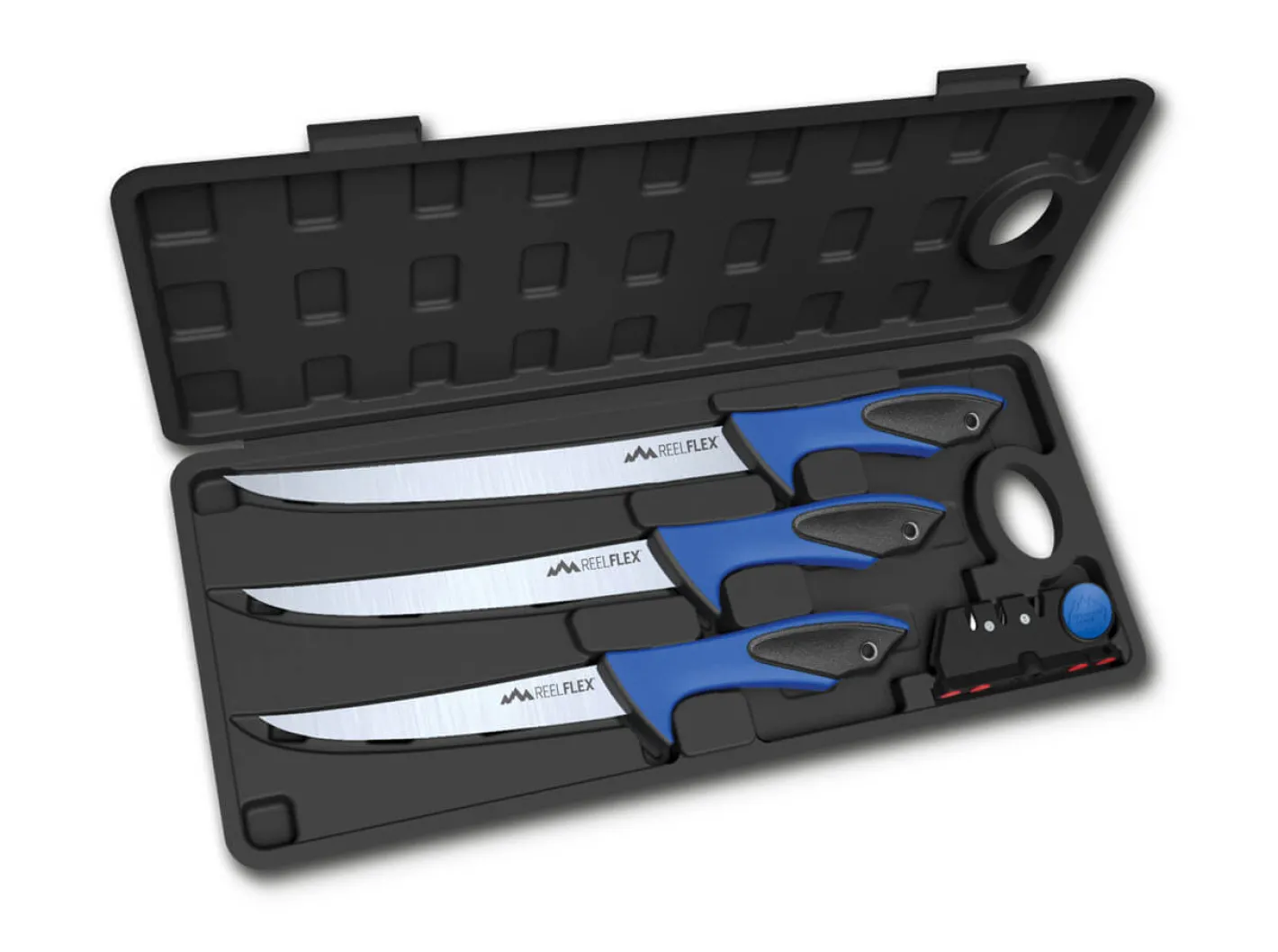 Das Outdoor Edge Reel-Flex Pack besteht aus drei professionellen Filetiermessern mit verschiedenen Klingenlängen. Die von Jerry Hossom entworfenen Messer bieten neben den strukturierten TPE-Griffen für maximale Rutschsicherheit Klingen aus dem hochwertigen deutschen Stahl 4116, der mit seiner Korrosionsbeständigkeit und der hohen Schnitthaltigkeit andere Filetiermesser dieser Preisklasse weit übertrifft. So sind die Reel-Flex Filetiermesser eine exzellente Wahl für Jäger und Angler. Lieferung in stabilem Hartschalenkoffer mit Messerschärfer.