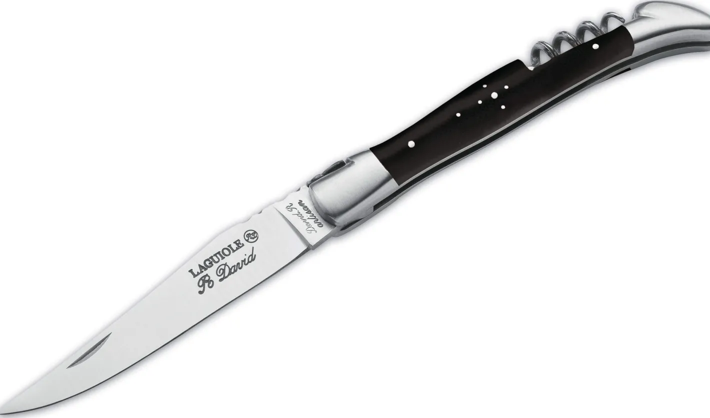 Die Heimat der weltweit bekannten Laguiole Messer liegt in Thiers, einer kleinen, seit 500 Jahren für ihre Schneidwaren berühmten Stadt in der französischen Auvergne. Ursprünglich inspiriert von Klappmessern aus Andalusien, werden dort seit Generationen die eleganten Messer mit der berühmten Biene, dem napoleonischen Wappentier, in unterschiedlichster Ausprägung gefertigt. Ideal für den täglichen Gebrauch, sind diese Messer ständige Begleiter Ihrer stolzen Besitzer und gehören inzwischen zum Ausdruck französischer Lebensart. Unter den zahlreichen Herstellern hat sich die Coutellerie Robert David internationales Renommee verschafft. Handgefertigte Laguiole Messer aus der Manufaktur Robert David überzeugen durch eine exklusive Materialauswahl, eine hohe Verarbeitungsqualität und viel Liebe zum Detail. Griffschalen aus Ebenholz und Backen aus Edelstahl.