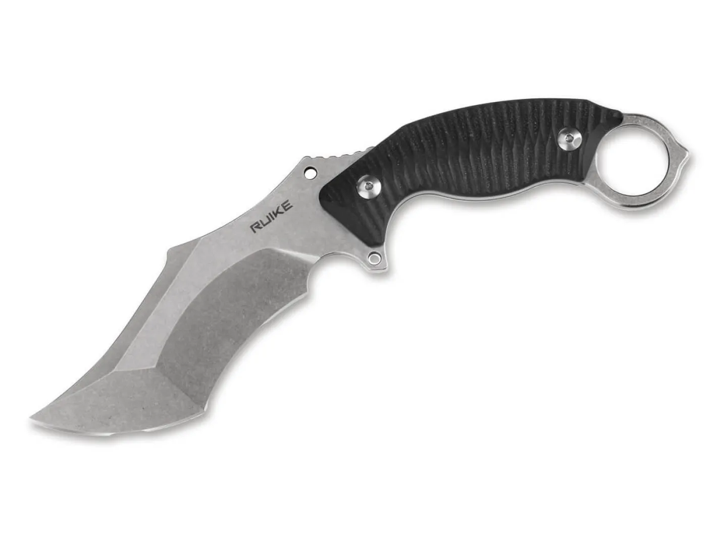 Seine taktischen Gene kann das Ruike F181 nicht verbergen. Das feststehende Messer vereint Elemente aus Karambit und Tanto in einem alltagstauglichen Mix aus 14C28N Klinge und texturiertem G10 Griff. Der Ring am Griffende kann zudem als Fangriemenöse verwendet werden. Lieferung mit passgenauer Scheide.
