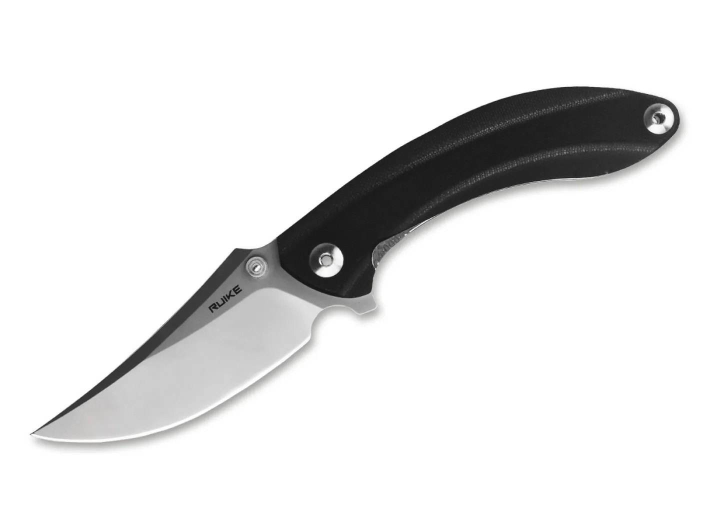 Die persischen Wurzeln des P852 von Ruike sind klar zu erkennen und verleihen dem geschwungenen Taschenmesser eine orientalische Anmutung. Der geschwungene Griff mit konturierten Griffschalen aus schwarzem G10 liegt sicher in der Hand. Darüber hinaus garantiert das Linerlock in Kombination mit einem Thumb Up Safety Lock eine sichere Arretierung der Klinge. Öffnen lässt sich die Klinge aus rostfreiem 14C28N per Flipper oder Daumenpin. Die Fingermulde ermöglicht zudem eine genauere Messerführung, insbesondere bei feinen Arbeiten. Mit abnehmbarem Clip (Tip-up).