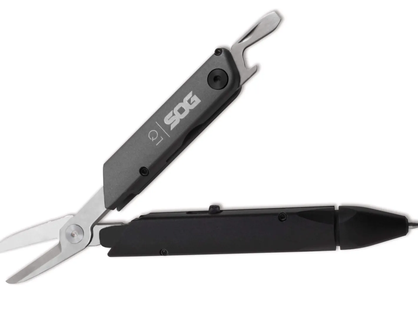 Die Batons sind eine neue Familie von Multifunktionswerkzeugen, die die gleiche Funktionalität wie klassisch konzipierte Multitools bieten, aber mit ihrer gänzlich neuen Ästhetik und dem modernen Design begeistern. Jedes Baton-Tool ist auf ein anderes Anwender-Szenario abgestimmt und ergänzt sich perfekt mit den übrigen Tools dieser Serie. Die innovative schlanke Form, nicht viel länger als ein Stift, und nicht dicker als ein Textmarker, macht es einzigartig. Sie passen bequem in die Hosentasche oder in das Stiftfach eines Organizers oder Rucksacks. Die schlanken und minimalistischen Batons sind aus Aluminium gefertigt und bieten eine Reihe von verschiedenen Werkzeugen. Das Q1 beinhaltet die Basiswerkzeuge für Büro und Alltag. So ist eine Schere mit Federmechanismus, ein Kugelschreiber mit Gasdruckmine, ein Kapselheber und ein mittelgroßer Schlitzschraubendreher vorhanden. Der Griff ist aus leichtgewichtigem Aluminium gefertigt, die Werkzeuge aus 5Cr15MoV.