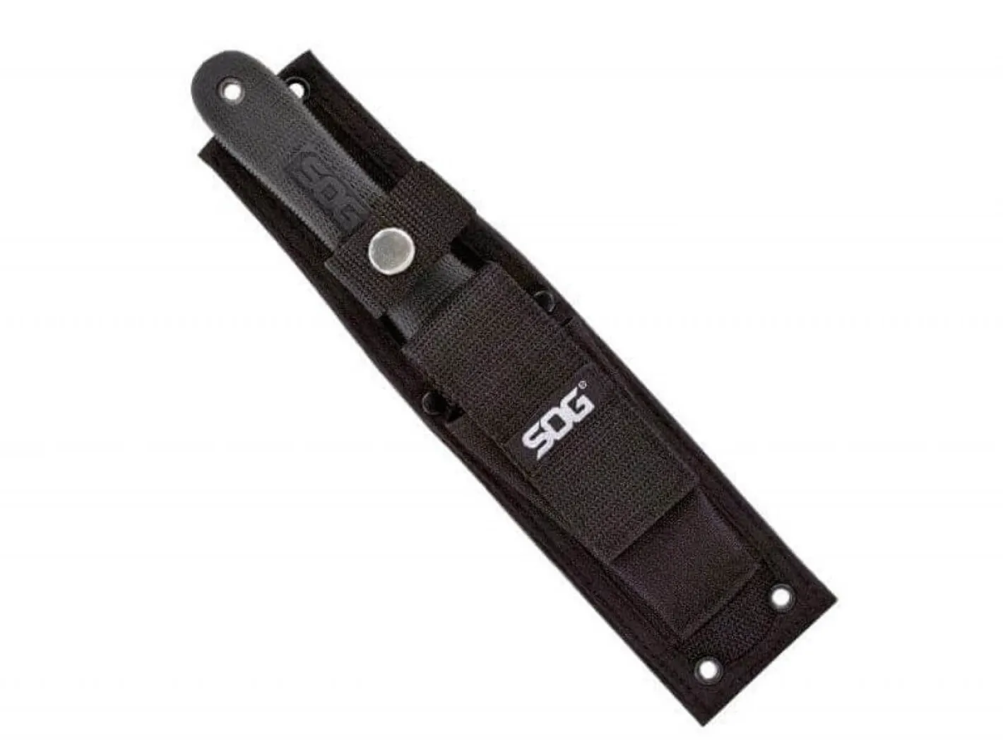 Ursprünglich als Back-Up für Militär und Law- Enforcement konzipiert, erfreut sich das SOG Pentagon auch unter Outdoorfreunden großer Beliebtheit. Die Wahl zwischen einer glatten Schneide und einem Vollwellenschliff, die beidseitigen Daumenriffelungen und der extrem rutschfeste Griff aus plastischem Elastomer mit klassischem Checkering machen das Pentagon zusammen mit der klassischen Nylonscheide zu einem verläßlichen Begleiter.