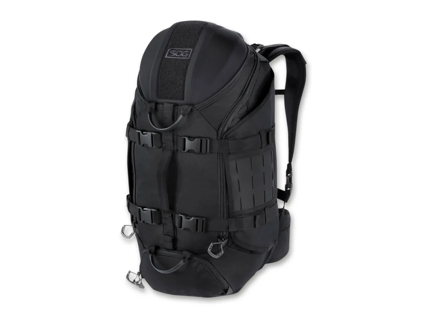Der SOG Prophet 33 ist ein anpassungsfähiger 33 Liter Rucksack der zum Duffle Bag umfunktioniert werden kann. Mit Hypalon MOLLE-Bereich zur Befestigung von Ausrüstungsgegenständen. Großes Hauptfach mit Vierfach-Reißverschluss zum schnellen und einfachen Packen auch von längeren Gegenständen. Deckel mit Schutzfunktion gegen Stoßeinwirkungen von außen. Inklusive Trinkblasenfach.