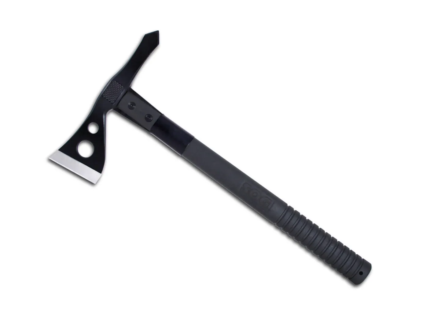 SOG – Extraordinary Tools & Blades: Der Name der 1986 gegründeten Firma SOG aus dem Bundesstaat Washington geht zurück auf eine Sondereinheit der US-Army, die für verdeckte Operationen zuständig war. SOG stand im Ursprung für „Studies and Observation Group“. Um den enormen Anforderungen der Eliteeinheiten gerecht zu werden, sind sämtliche SOG Messer für härteste Beanspruchung konzipiert. Der legendäre Vietnam-Tomahawk erlebt eine Renaissance als vielseitiges Einsatz und Zugriffswerkzeug. Der stabile Axtkopf aus 420er Stahl ist mit einer schwarzen Oxidschicht versehen. Der Schaft aus Kunststoff absorbiert einen großen Teil der Auftreffenergie und schont somit die Hand des Anwenders. Ob zum Öffnen eines Verschlags, zum Einschlagen von Scheiben, zum Spalten von Holz oder zum Hämmern, die bewährte Form des Axtkopfes garantiert „durchschlagenden Erfolg“. Lieferung inklusive Nylon-Etui.