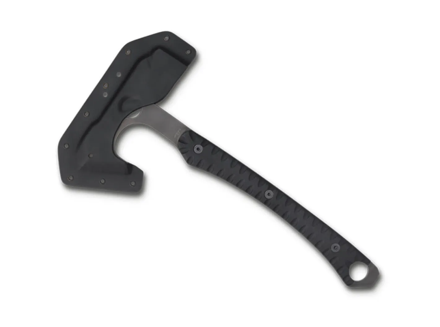 Das Warrior Hawk basiert auf den vielschichtigen und umfangreichen Erfahrungen des Martial Artists Laci Szabo aus seiner Zeit als U.S. Marine und Polizeibeamter. Das Hawk ein durchdachtes und vielseitiges Entry Tool aus einem Stück solidem D2-Stahl. Der facettierten Hauptschneide und dem penetrationskräftigen Dorn auf der Kopfrückseite hält kaum etwas Stand. Die langen, strukturgefrästen Griffschalen aus G10 ermöglichen das Greifen auf der gesamten Schaftlänge. Das Schaftende ist flach als Brecheisen ausgearbeitet. Der Kopf wird von einer handgemachten Boltaron-Scheide geschützt. Zusätzlich ist eine gepolsterte Reisverschlusstasche im Lieferumfang enthalten.