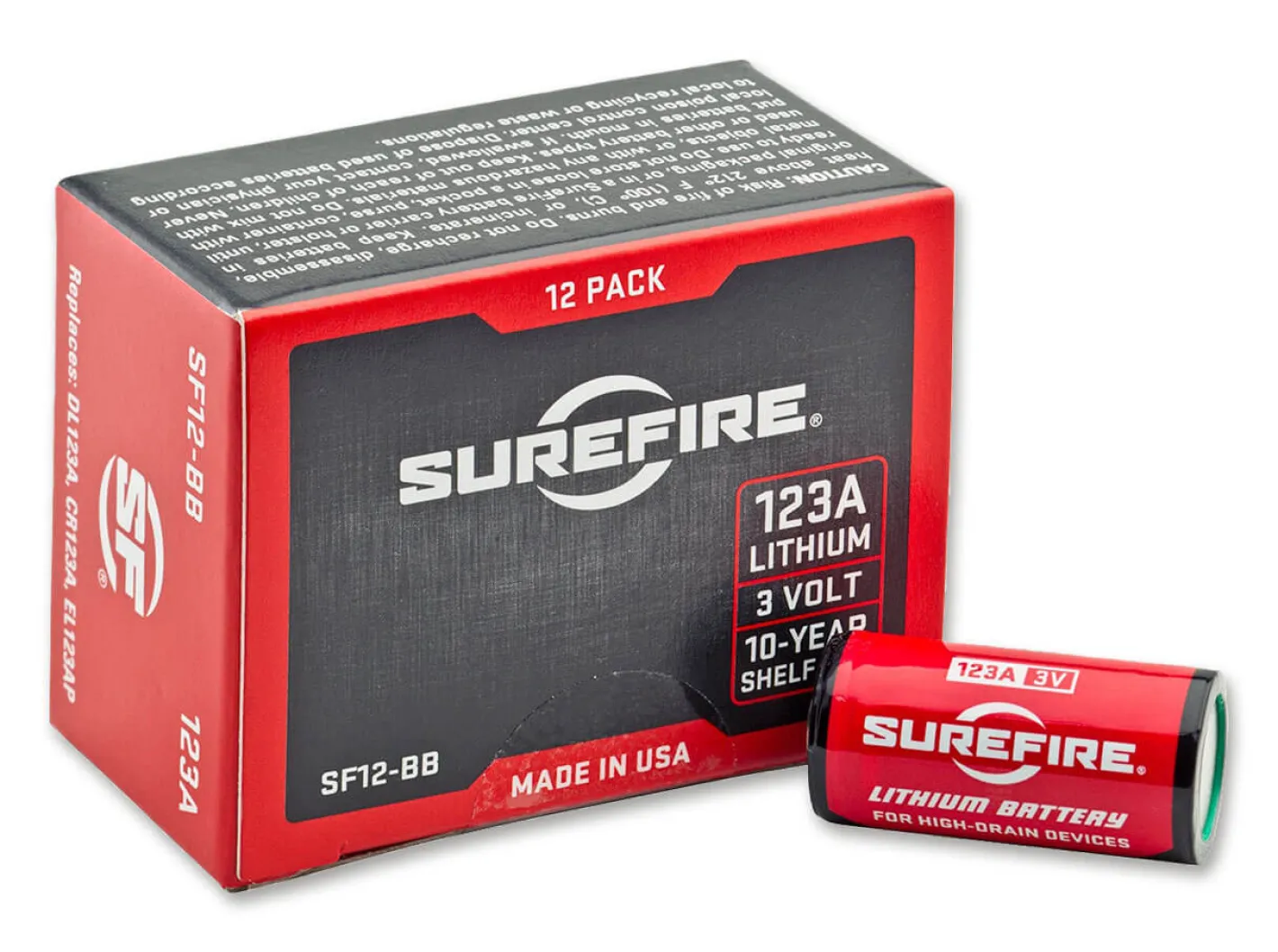 Zwölf hochwertige CR123A Lithium Batterien mit 1550 mAh und drei Volt Spannung, die für den Einsatz in SureFire Taschenlampen optimiert sind. Die Batterien werden in den USA gefertigt und sind dank ihrer außergewöhnlichen Temperaturtoleranz zehn Jahre lagerfähig.