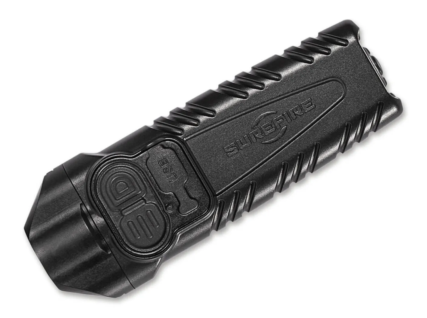 Die handliche SureFire Stiletto Pro ist eine schlanke taktische Taschenlampe mit drei verschiedenen Leuchtstufen (1000/300/25 Lumen) und einer maximalen Reichweite von ca. 142 Metern. Der von SureFire entwickelte MaxVision Beam Reflektor erzeugt einen gleichmäßigen, optimierten Lichtstrahl. Über die Schalter auf der Oberseite des nach IPX7 wasserdichten Gehäuses werden die verschiedenen Funktionen aktiviert. Der praktische Micro-USB-Anschluss ermöglicht das einfache Aufladen des integrierten Akkus, sodass kein zusätzliches Ladegerät erforderlich ist. Zudem verschafft die in das Gehäuse integrierte Kapazitätsanzeige Klarheit über den Ladezustand. Die SureFire Stiletto Pro kann bei Maximalleistung ca. 60 Minuten lang betrieben werden. Mit umsetzbarem, widerstandsfähigem Clip.