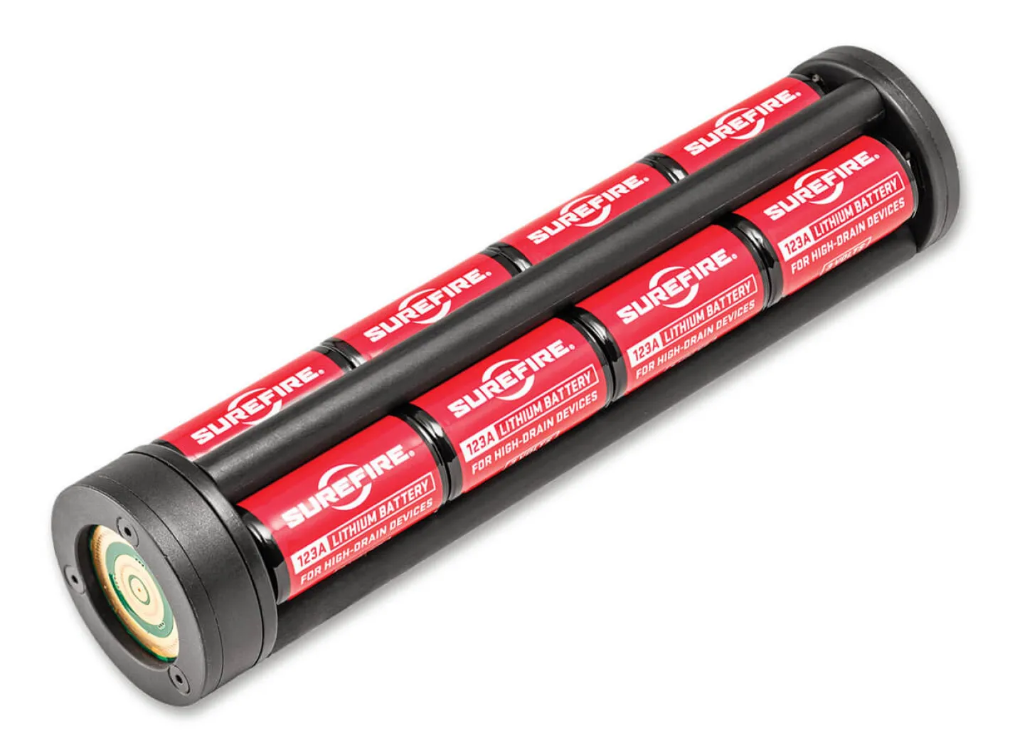 Die eindrucksvolle SureFire UDR Dominator ist mehr Flutlicht als klassische Taschenlampe und liefert mit 2400 Lumen genug Leuchtkraft, um augenblicklich ganze Bereiche zu erhellen. Die Reichweite beträgt dabei ca. 903 Meter. Neun wählbare Ausgabeeinstellungen, von maximaler Leistung bis hinunter zu 14 Lumen, decken von Scheinwerferanwendungen bis hin zu aufgabenorientiertem Arbeiten im Nahbereich alles ab. Der nahezu unverwüstliche LED-Präzisionsreflektor erzeugt einen gleichmäßigen, optimierten Lichtstrahl.Über den praktischen Drehring und die taktischen Schalter werden die verschiedenen Funktionen aktiviert. Das robuste Gehäuse aus widerstandsfähigem Aluminium ist mit einer feinen Texturierung versehen und zudem wasserdicht nach IPX7. Mit O-Ring und Dichtung für wetterfesten Schutz. Die SureFire UDR Dominator wird mit einem wiederaufladbarem Spezialakku ausgeliefert und kann damit ca. 135 Minuten lang betrieben werden. Alternativ lässt sich die Lampe dank Batteriefach auch durch die ebenfalls im Lieferumfang enthaltenen 12 CR123A Lithium Batterien mit Strom versorgen. Zudem verschafft die in das Gehäuse integrierte Kapazitätsanzeige Klarheit über den Ladezustand. Mit passendem Ladekabel und praktischem Tragegurt.