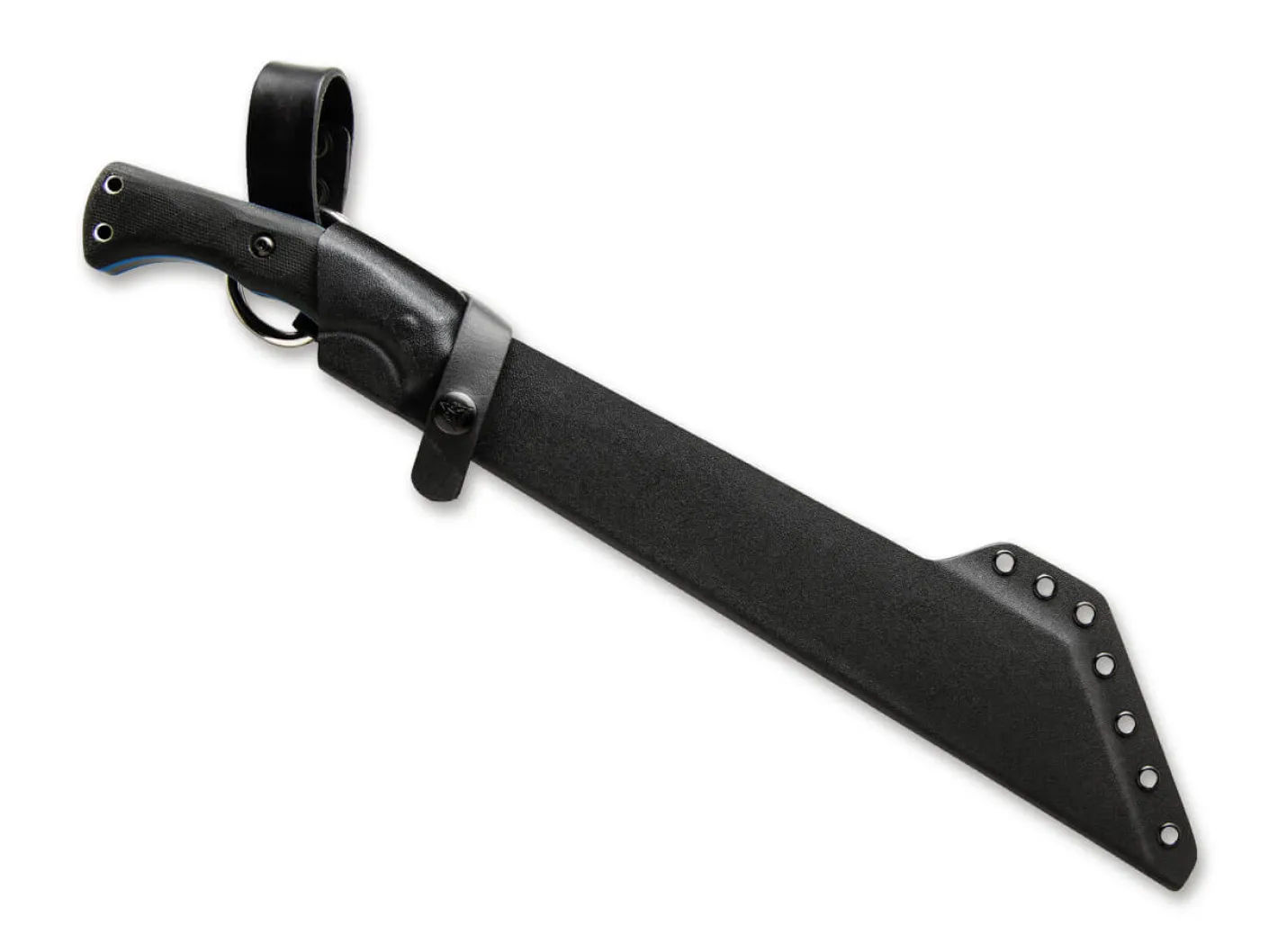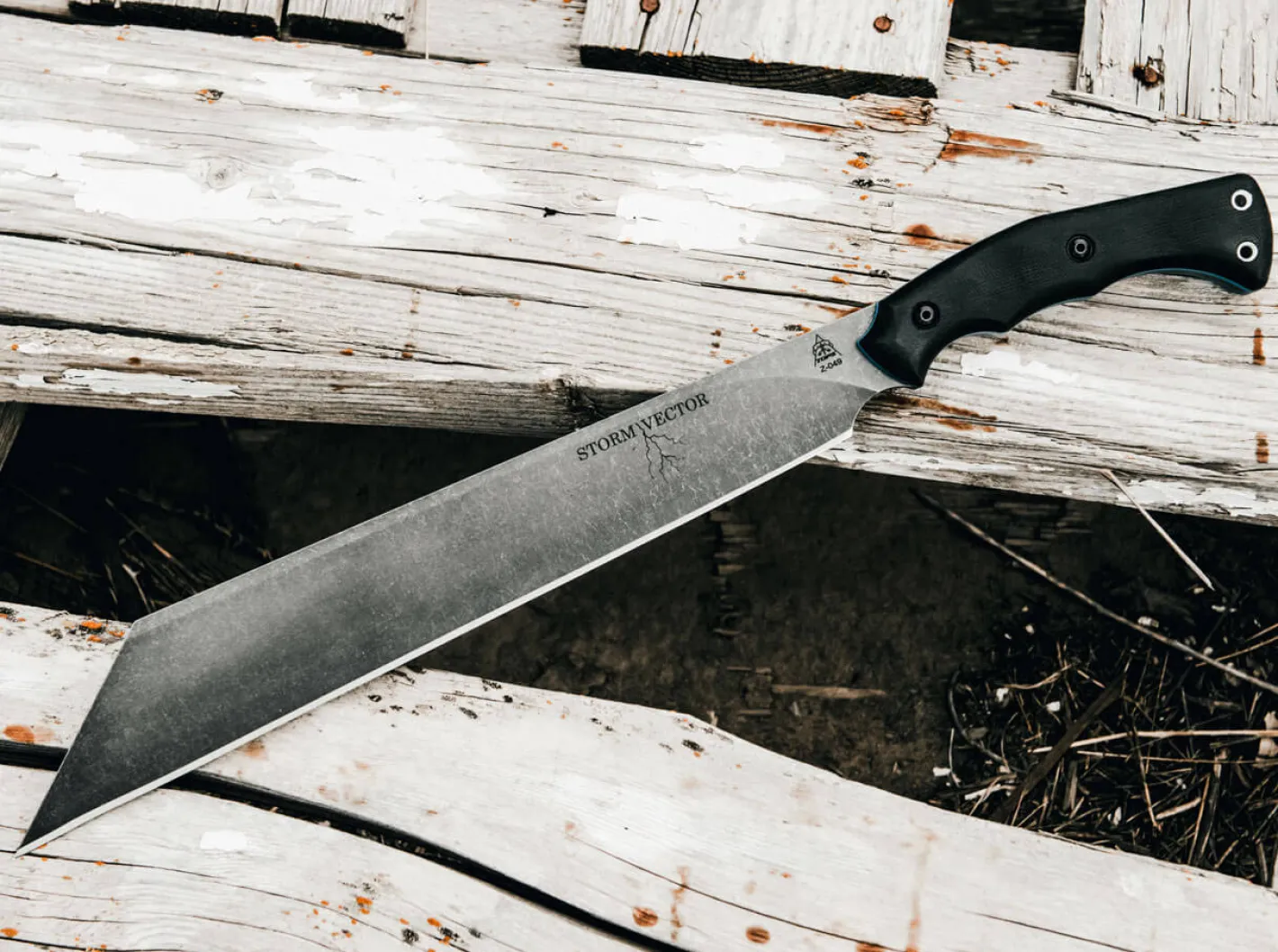 Der Storm Vector von TOPS ist die moderne Interpretation des insbesondere bei den Wikingern verwendeten Scramasax. Die Machete ist mit einer grau beschichteten Klinge aus nicht rostfreiem 1095 Kohlenstoffstahl ausgestattet und untermalt sein stürmisches Gemüt mit dem Blitzmotiv auf der Klingenvorderseite. Der Griff aus Micarta wird von blauen Linern geschmückt und liegt dank seiner ergonomischen Form auch bei widrigen Bedingungen ideal in der Hand. Mit Kydexscheide und Doppel-Fangriemenöse am Griffende.