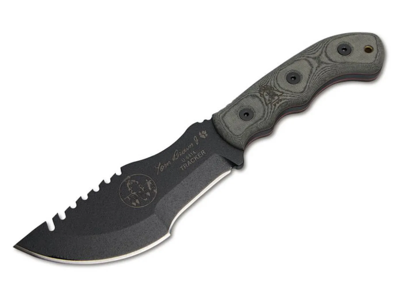 Die Modellserie Tracker wurde vom bekannten Fährtenleser und Survival-Experten Tom Brown II entwickelt, der seit 1978 eine feste Größe in der Szene ist. Die Tracker Modelle spiegeln sein geballtes Knowhow wider und überzeugen mit 1095 Kohlenstoffstahlklingen mit dem widerstandsfähigen Traction Coating. Die kleinere Version dieses wohl bekanntesten aller TOPS-Messer ist weniger wuchtig, aber dafür ein umso führigeres Survival-Messer zum Hacken, Schneiden, Schaben, Sägen, Graben, Hebeln etc., ausgestattet mit einer 1095er Kohlenstoffstahlklinge mit Black Traction Coating und Griffschalen aus Canvas-Micarta. Die Scheide aus Kydex kann dank zweier drehbarer Stahlclips konventionell am Gürtel aber auch im Scout-Style quer am Rücken getragen werden.