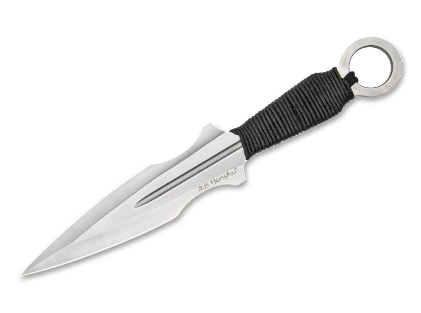 Die beliebte Honshu Serie wird um das außergewöhnliche Kunai Wurfmesser Set erweitert, das in keiner Ausrüstung ambitionierter Messerakrobaten fehlen darf. Jedes der drei Messer besteht aus rostfreiem 7Cr13-Stahl und ist mit einer Hohlkehle in der Klingenmitte versehen. Die Griffe der Ganzstahlkonstruktion sind mit schwarzer Baumwollschnur umwickelt, was für eine sichere Handhabe beim Werfen sorgt. Lieferung mit strapazierfähiger Nylonscheide.