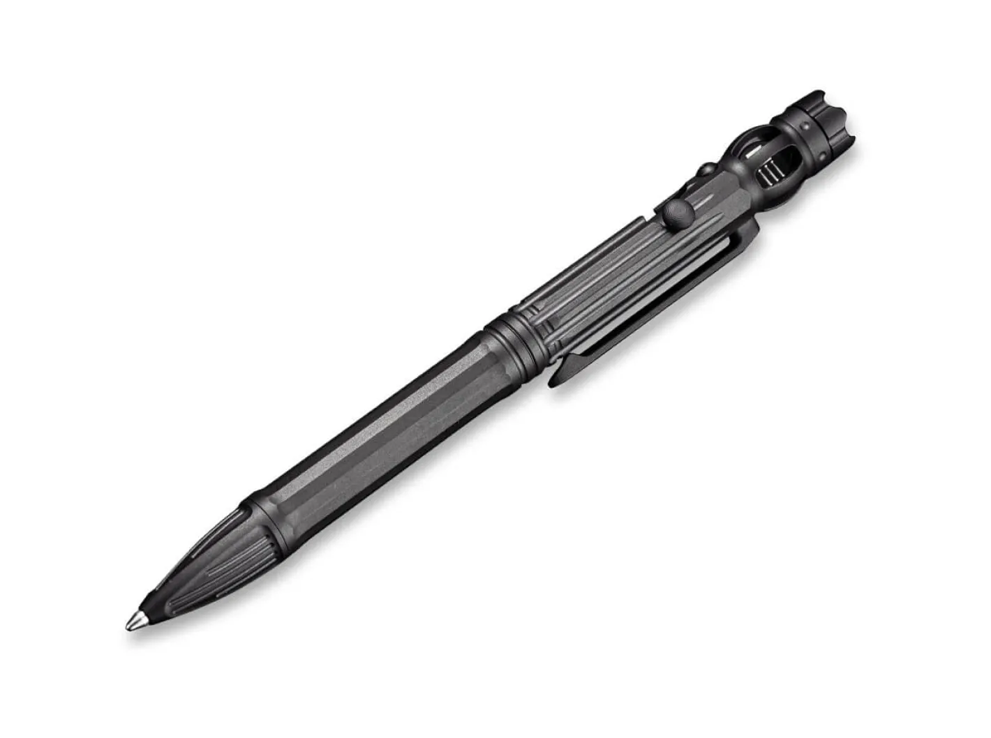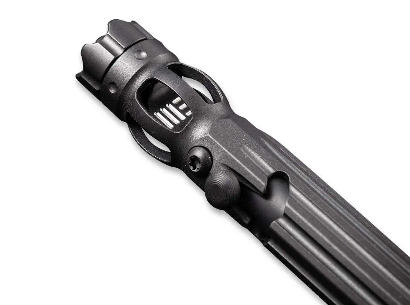 In Anlehnung an den mittelalterlichen Baculus, einem dem Zepter ähnlicher Streitkolben, präsentiert WE Knife den gleichnamigen Tactical Pen. Der aus schwarzem Titan gefertigte Stift ist aber hingegen genügsam gestimmt und beruhigt strapazierte Nerven mit dem integrierten Rotations-Spinner im oberen Bereich des Griffs. Den krönenden Abschluss bildet der Glasbrecher am Griffende. Verwendet werden Minen des Typs Schmidt EasyFLOW 9000M oder vergleichbar. Schreibfarbe der mitgelieferten Mine: Schwarz.