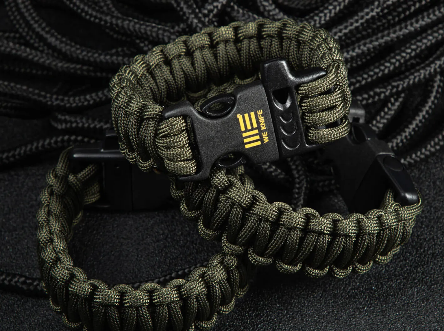 Mit einem Klick zum nervenaufreibenden Kick: Das praktische Überlebensarmband von WE Knife darf bei keinem Abenteuer fehlen. Das Armband trägt sich angenehm auf der Haut und kann mit der Steckschnalle im Handumdrehen geschlossen oder geöffnet werden. Der hochfeste, grüne Paracord kann abgewickelt werden und dient dabei als nützlicher Helfer zum Festbinden, Halten oder Abseilen mittelgroßer Gegenständen wie als Tourniquet zur Versorgung von Verletzungen. Im Verschlussclip ist eine lautstarke Notfallpfeife zur Warnung, Sicherung und Lokalisierung integriert.